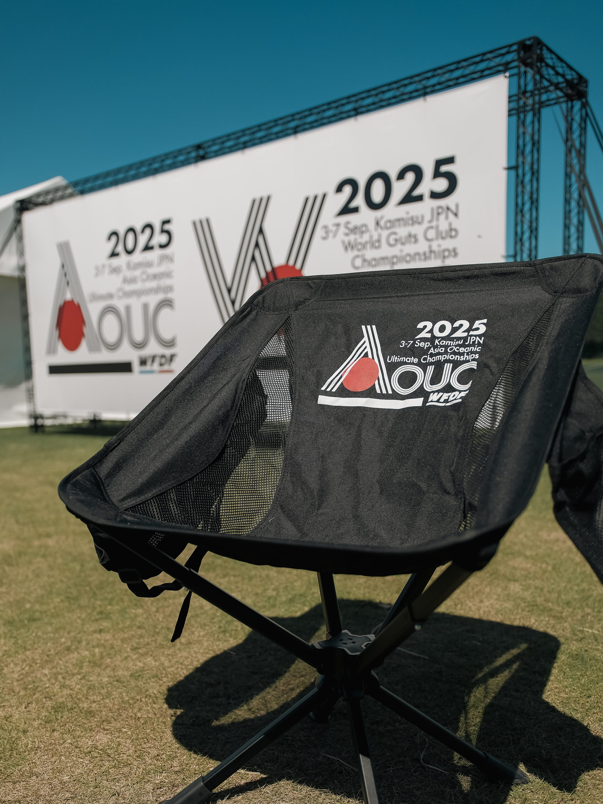 AOUC 2025(アジア・オセアニア アルティメット選手権大会)公式デザインをあしらった限定折りたたみチェアです。